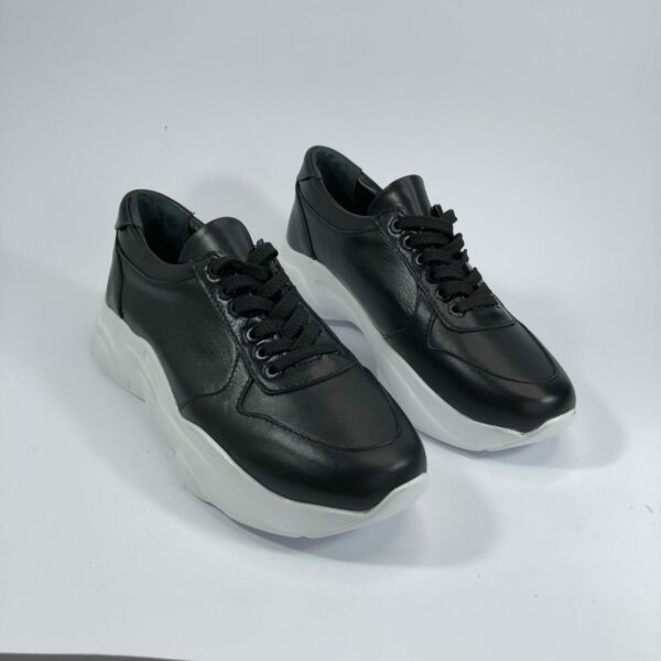Мягкие комфортные кроссовки изготовлены из натуральной кожи черного цвета на стильной белой танкетке. С мягким кантом и мягким языком. Прекрасно сидят на ножке. Полномерные, соответствуют стандартной сетке размера. Рассчитаны на разную полноту ноги благодаря шнуровке. Возможен отшив в коже, замши разных цветов.