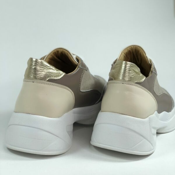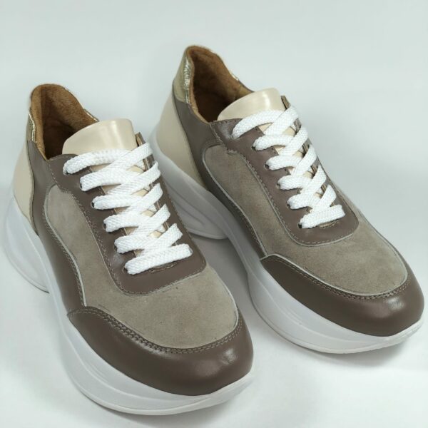 Стильные кроссовки изготовлены из натуральной кожи и замши – разноцветные. Прекрасно сидят на ножке. Полномерные, соответствуют стандартной сетке размера. Рассчитаны на разную полноту ноги благодаря шнуровке. Возможен отшив в коже, замши разных цветов.