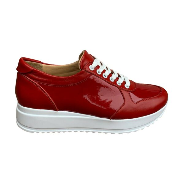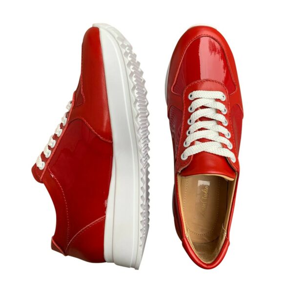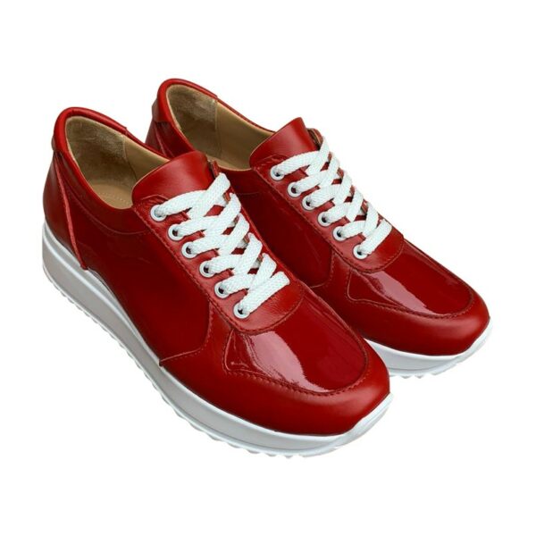 Классические, комфортные кроссовки изготовлены из натуральной красной кожи и лака на облегченной белой подошве. С мягким кантом и мягким языком. Прекрасно сидят на ножке. Полномерные, соответствуют стандартной сетке размера. Рассчитаны на разную полноту ноги благодаря шнуровке. Возможен отшив в коже, замши разных цветов.
