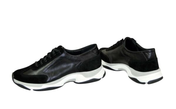 Стильные, комфортные кроссовки изготовлены из натуральной кожи и черной замши. С мягким кантом и мягким языком. Прекрасно сидят на ножке. Полномерные, соответствуют стандартной сетке размера. Рассчитаны на разную полноту ноги благодаря шнуровке. Возможен отшив в коже, замши разных цветов.