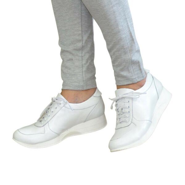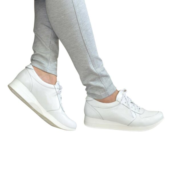 Классические, комфортные кроссовки, изготовленные из натуральной кожи белого цвета. С мягким кантом и мягким языком. Прекрасно сидят на ножке. Полномерные, соответствуют стандартной сетке размера. Рассчитаны на разную полноту ноги благодаря шнуровке. Возможен отшив в коже, замши разных цветов.