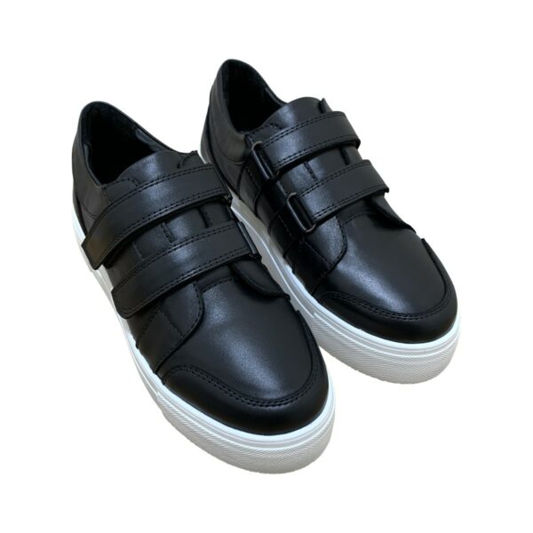 Стильные женские кроссовки из черной натуральной кожи на белой подошве, на липучках. С мягким кантом и мягким языком. Прекрасно сидят на ножке. Полномерные, соответствуют стандартной сетке размера. Рассчитаны на разную полноту ноги благодаря шнуровке. Возможен отшив в коже, замши разных цветов.