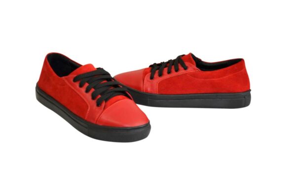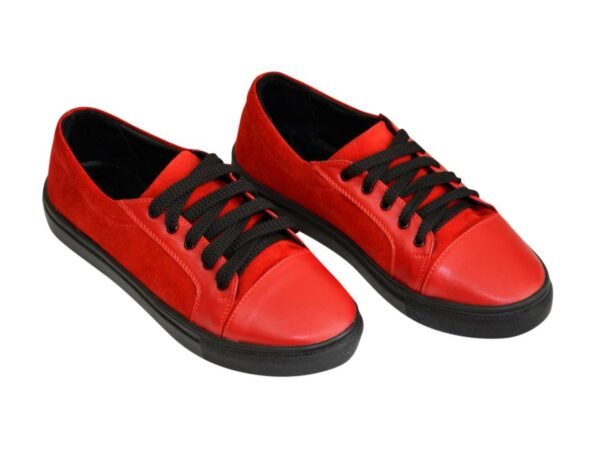 Облегченные кеды аккуратно смотрятся на ножке! Изготовлены из натуральной кожи и красной замши. Соответствуют стандартной размерной сетке. Рассчитаны на разную полноту ноги благодаря шнуровке. Возможен отшив в коже, замши разных цветов.