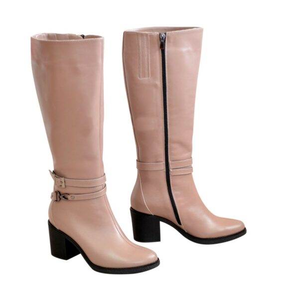 Стильные женские сапоги из натуральной кожи, цвет визона, с резинкой в верхней части сапога, на утолщенной подошве со стойким подбором.