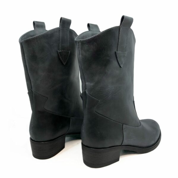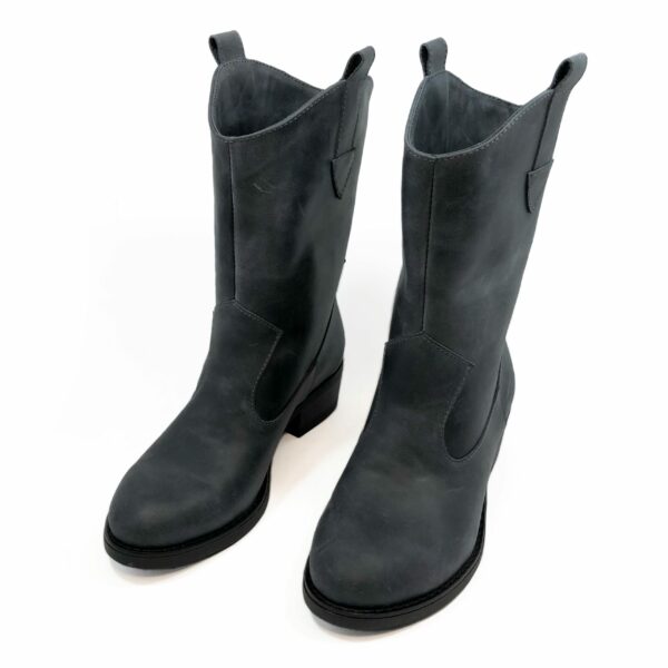 Женские сапоги казаки из натуральной кожи Крейзи синего цвета на не высоком каблуке, прямой обуви.