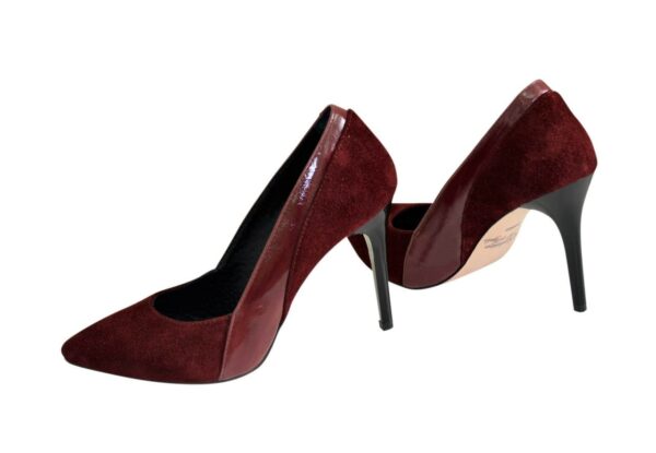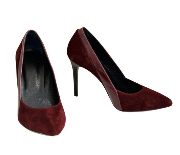 Выходные классические туфли-лодочки на высокой шпильке 9.5 см. Выполнены из натуральной замши и кожи бордового цвета. Ручная работа с использованием исключительно натуральных материалов высокого качества. Соответствуют стандартной размерной сетке. Рассчитаны на стандартную полноту бедра. Возможен отшив в коже, замши разных цветов.