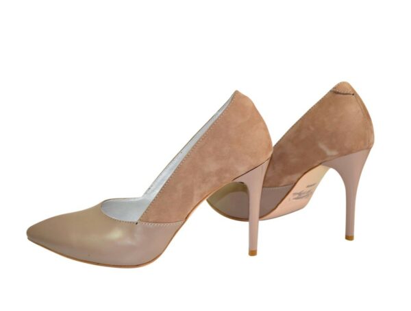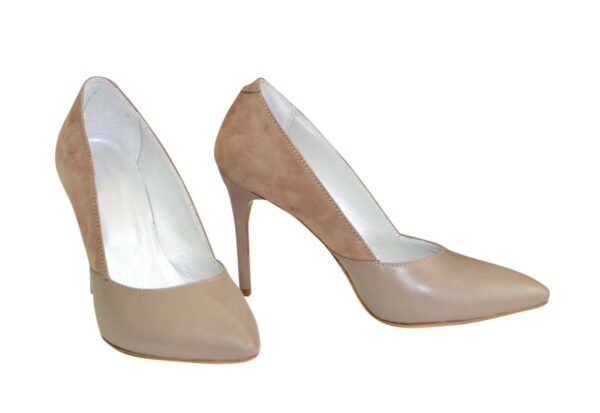 Классические туфли-лодочки на высокой шпильке 9.5 см. Выполнены из натурального нубука бежевого цвета и кожи цвета визон. Ручная работа с использованием исключительно натуральных материалов высокого качества. Соответствуют стандартной размерной сетке. Рассчитаны на стандартную полноту бедра. Возможен отшив в коже, замши разных цветов.