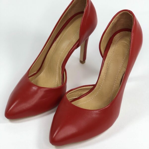 Классические туфли с заостренным носком на высокой шпильке 9.5 см. обтянутой красной кожей. Выполнены из натуральной кожи красного цвета. Ручная работа с использованием исключительно натуральных материалов высокого качества. Соответствуют стандартной размерной сетке. Рассчитаны на стандартную полноту бедра. Возможен отшив в коже, замши разных цветов.