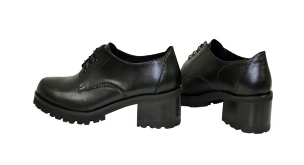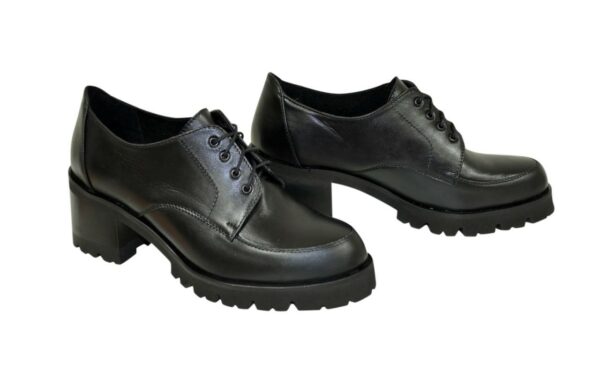 Закрытые женские туфли из натуральной кожи черного цвета, на широком стойком подборе высотой 5 см спереди 1.5 см. Благодаря шнуровке подойдут большой подъем. Ручная работа с использованием исключительно натуральных материалов высокого качества. Полномерные, соответствуют стандартной сетке размера. Рассчитаны на стандартную полноту бедра. Возможен отшив в коже, замши разных цветов.