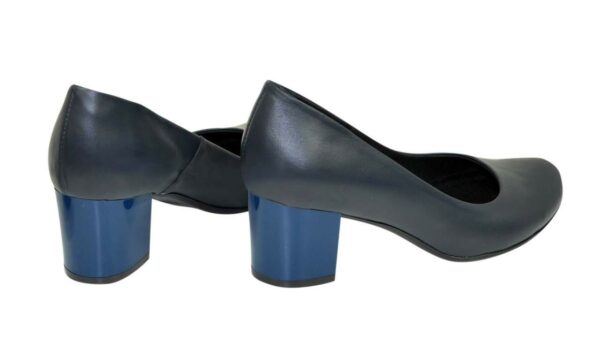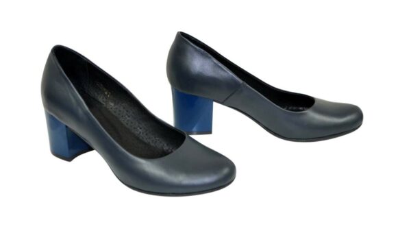 Лодочки-туфли классические женские из натуральной синей кожи на стойком подборе высотой 6 см. Ручной работы с использованием исключительно натуральных материалов высокого качества. Полномерные, соответствуют стандартной сетке размера. Возможен отшив в коже, замши разных цветов.