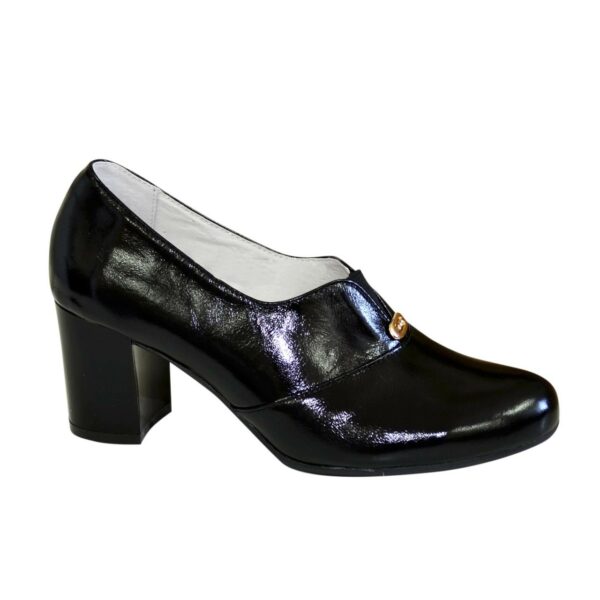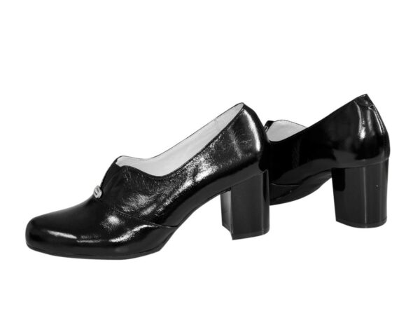 Женские туфли благородного черного цвета из натуральной лаковой кожи на широком стойком каблуке (6см). Украшенные фурнитурой. За счет резинки вшитой на подъеме – подойдут на ножку с подъемом. Удобные и практичные, хорошо смотрятся на ноге. Пару по праву можно назвать универсальной и совмещенной с любым хитом вашего весенне-летнего гардероба. Соответствуют стандартной размерной сетке. Возможен отшив в коже, замши разных цветов. Также у нас работает услуга «Индивидуальное изготовление». С помощью этой услуги можно создать маленькую коллекцию, используя свои любимые цвета. ТМ zlata-studio найдем подход к любому клиенту.