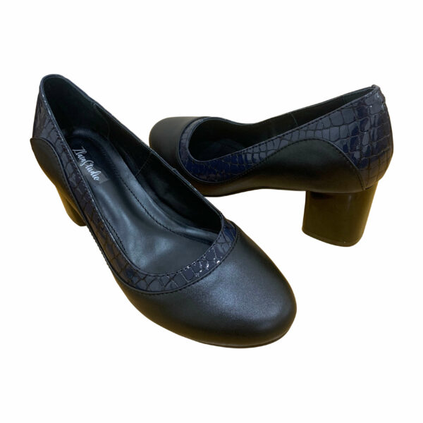 Женские туфли из натуральной гладкой кожи черного цвета с лаковой синей кожей "крокодил" в классическом стиле на широком стойком подборе (5.5 см). Легкие и удобные подойдут для повседневной носки. Обувь такого плана подходит всем без исключения. Соответствуют стандартной размерной сетке. Возможен отшив в коже, замши разных цветов. Обратите внимание, что у нас работает услуга индивидуальное изготовление. С помощью этой услуги можно создать маленькую коллекцию, используя свои любимые цвета. ТМ zlata-studio найдем подход к каждому клиенту.
