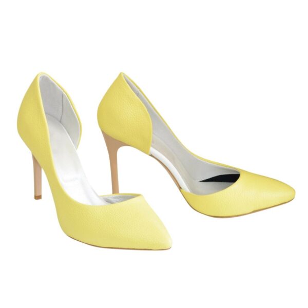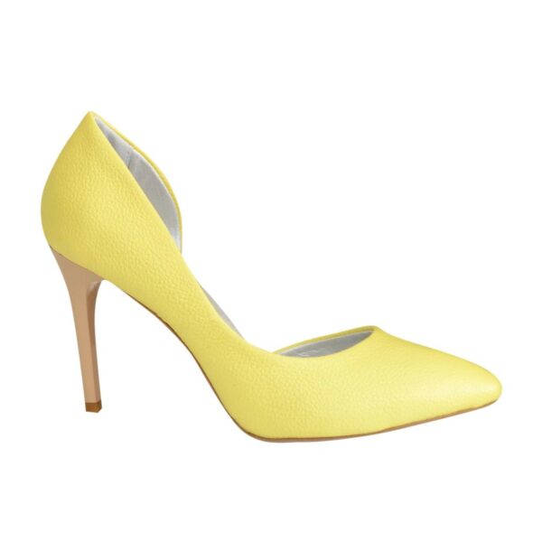 Классические туфли с заостренным носком на высокой шпильке 9.5 см. Выполнены из натуральной кожи желтого цвета. Ручная работа с использованием исключительно натуральных материалов высокого качества. Соответствуют стандартной размерной сетке. Рассчитаны на стандартную полноту бедра. Возможен отшив в коже, замши разных цветов.