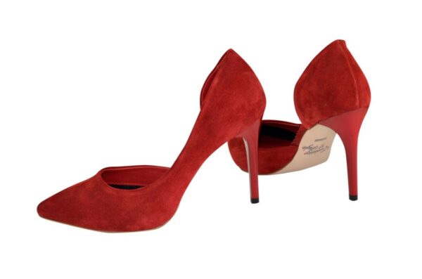 Классические туфли с заостренным носком на высокой шпильке 9.5 см. Выполнены из натуральной замши красного цвета. Ручная работа с использованием исключительно натуральных материалов высокого качества. Соответствуют стандартной размерной сетке. Рассчитаны на стандартную полноту бедра. Возможен отшив в коже, замши разных цветов.