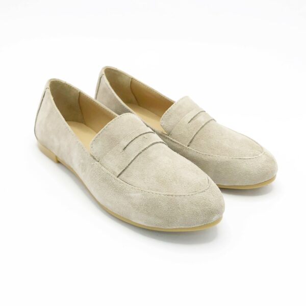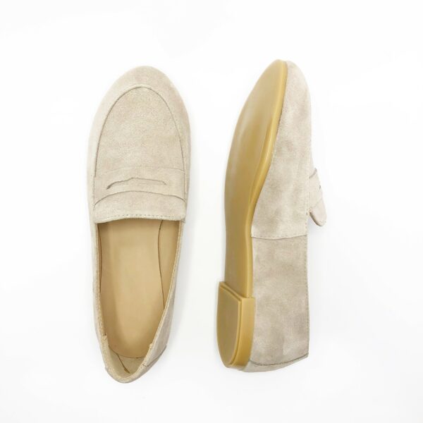 Классические мокасины из натуральной замши бежевого цвета на тонкой подошве. Изготавливаются только из натуральных материалов. Полномерные соответствуют стандартной сетке размера. Возможен отшив в коже и замши разных цветов – учитываем любые пожелания заказчика